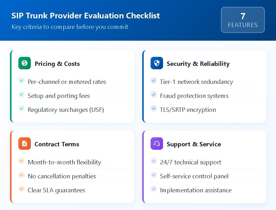 Choosing the right SIP trunk provider requires balancing pricing, features, contracts, and support. By applying the evaluation framework outlined here, you can cut through marketing noise and identify providers that genuinely match your business requirements. The time invested in comparison pays dividends through years of reliable, cost-effective communications.