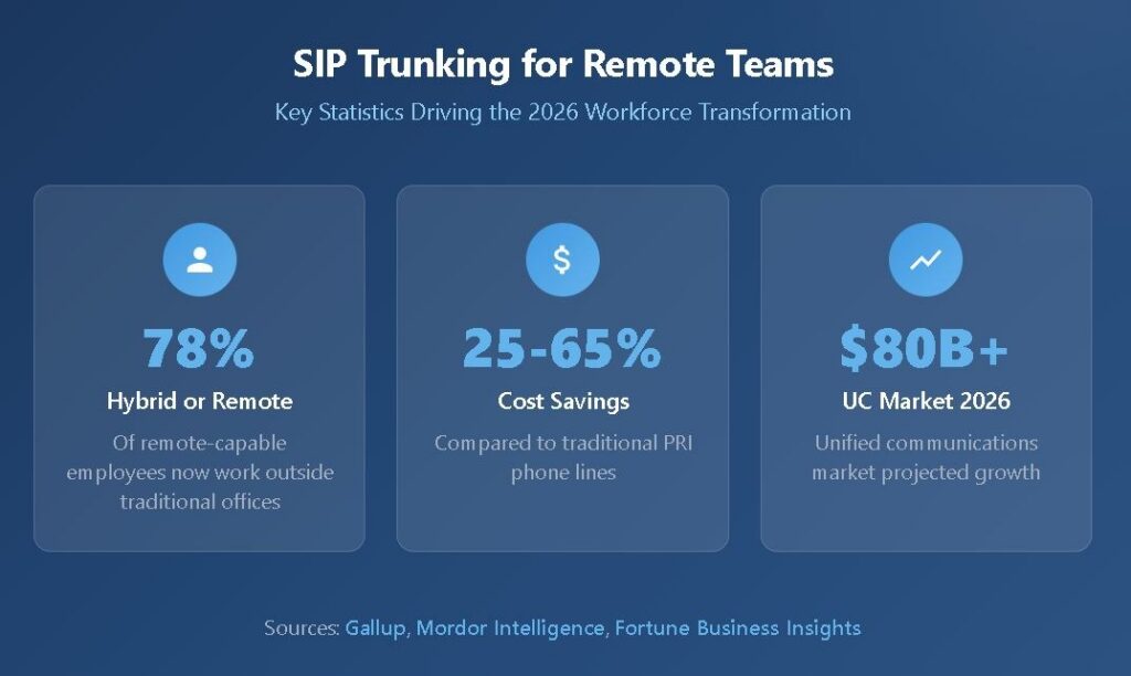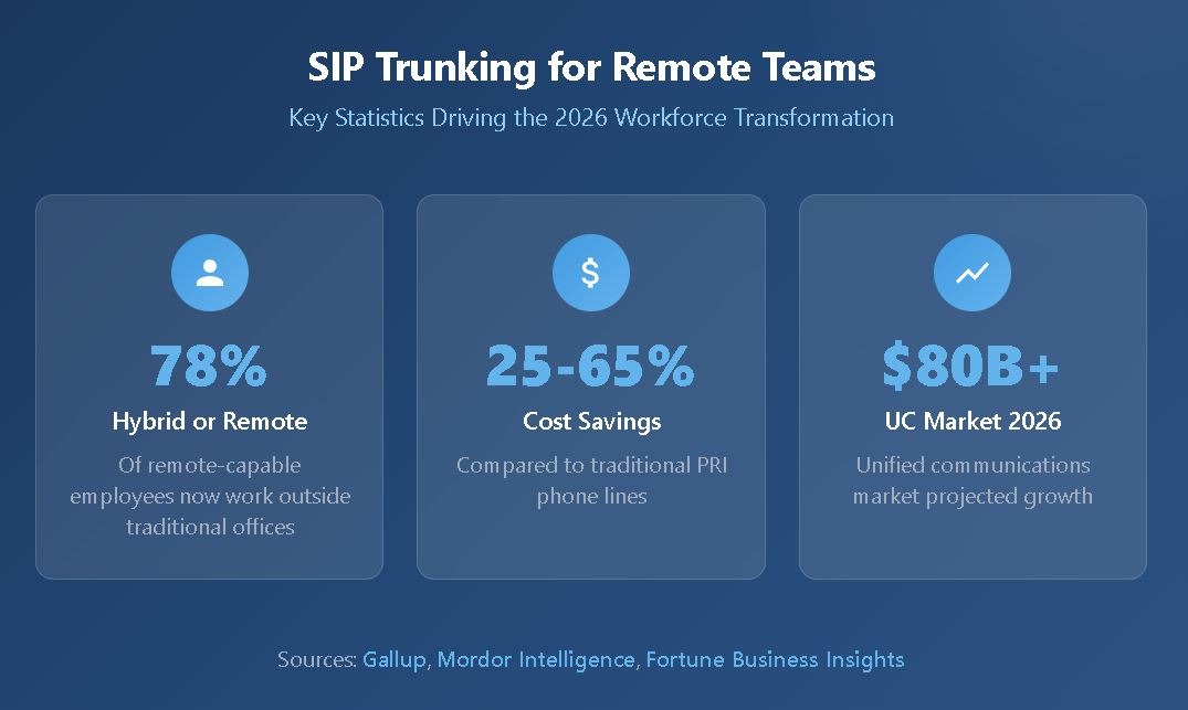 SIP trunking for remote teams eliminates this compromise. By transmitting voice calls over internet connections rather than physical phone lines, businesses gain communication capabilities that follow employees wherever they work. The technology has matured, with the unified communications market projected to reach over $80 billion in 2026 as organizations prioritize flexible infrastructure.