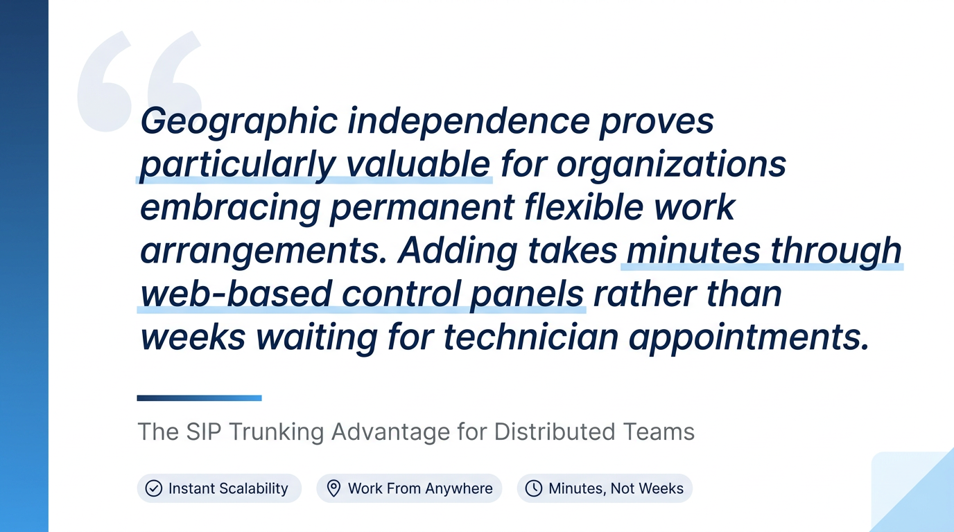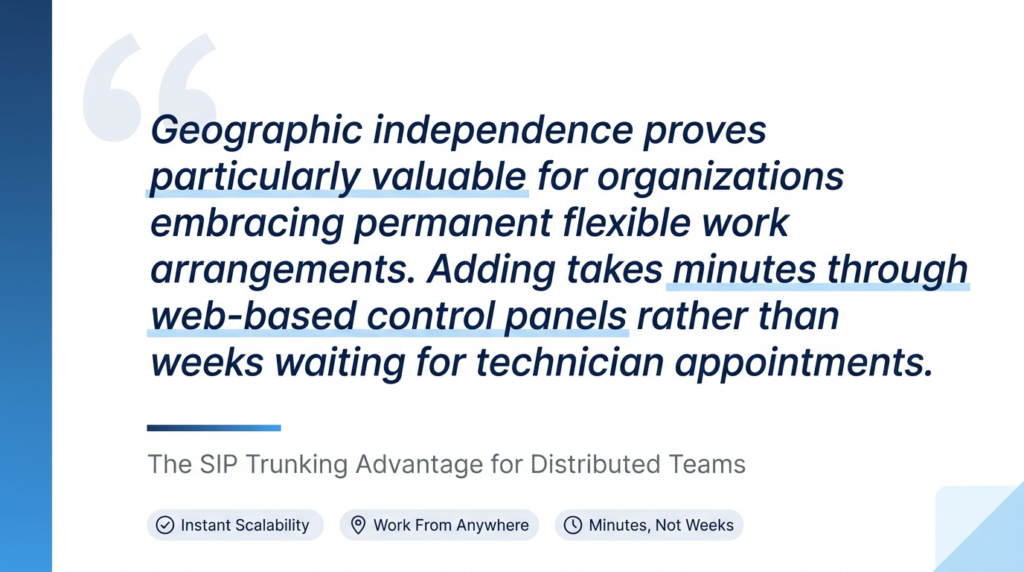 SIP trunking transforms how distributed workforces communicate by eliminating the geographic constraints that limit traditional phone systems. The technology converts voice signals into digital data transmitted over internet connections, enabling businesses to route calls through unified infrastructure rather than maintaining separate systems for each location.