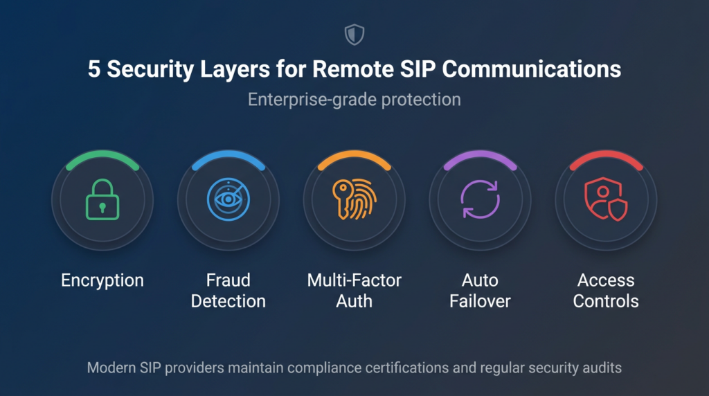 Security concerns influence communication infrastructure decisions, particularly for organizations with employees connecting from various networks and locations. Modern SIP trunking for remote teams addresses these concerns through multiple protective layers: