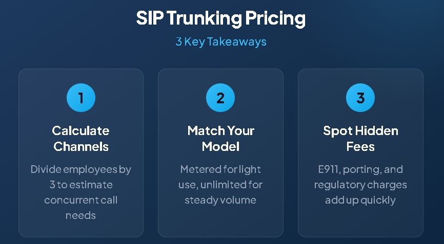 Navigating SIP trunking pricing requires understanding channel structures, comparing pricing models against your usage patterns, and identifying hidden costs before they appear on invoices. Businesses that invest time evaluating their specific requirements and questioning provider quotes make decisions that deliver both immediate savings and long-term value.