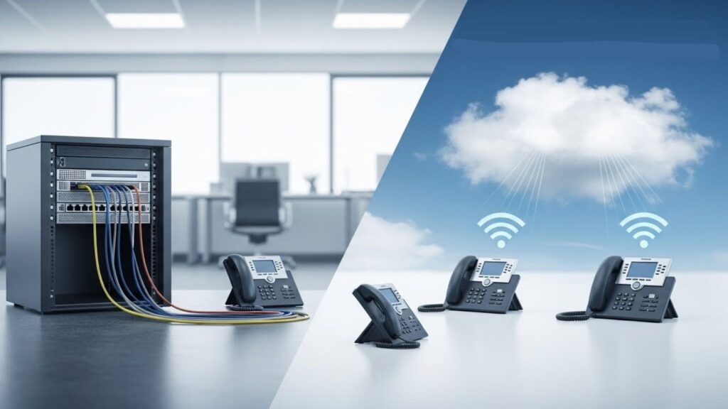 - Hosted PBX eliminates on-site equipment entirely but locks you into a provider’s feature set and pricing structure.