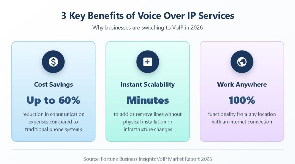 Voice over IP services deliver measurable advantages across cost reduction, operational flexibility, and communication capabilities that directly impact business performance.