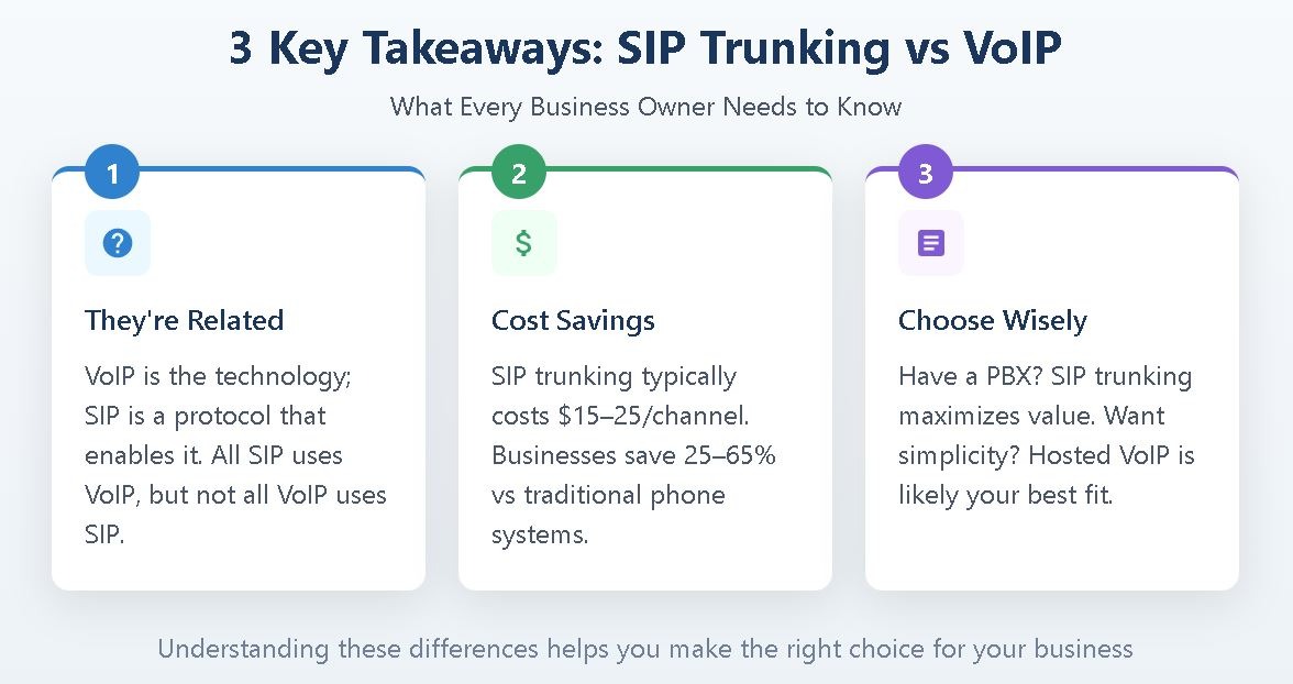 Understanding the VoIP vs SIP distinction helps clarify what each technology contributes to your communications: